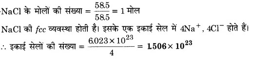 58.5 ग्राम NaCl में इकाई सेलों की संख्या ज्ञात कीजिए।